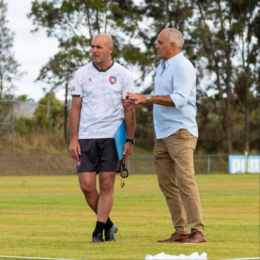 Diego Dorta en el presente como gerente deportivo de Albion, junto al técnico elegido: Walter Pandiani