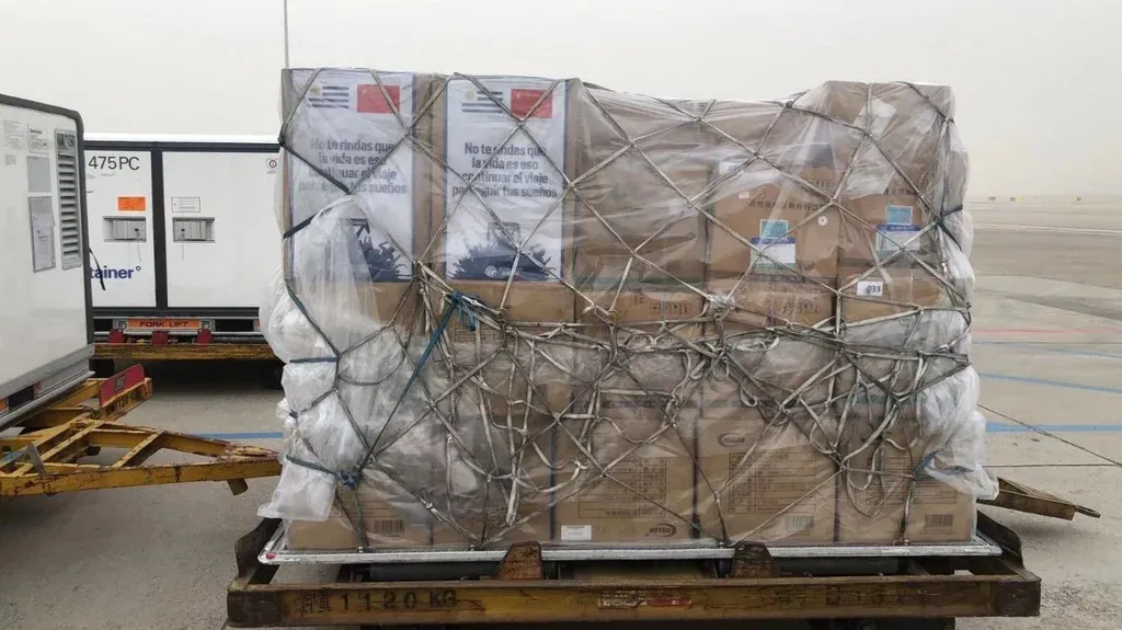 Este año partió desde Pekín un avión con 1.558.000 dosis de Sinovac contra el covid-19 y una donación de insumos médicos que llegó a Uruguay. Las cajas exhibían, junto a banderas de ambos países y la inscripción “garra charrúa”, un fragmento que hace alusión al texto: "No te rindas que la vida es eso, continuar el viaje, perseguir tus sueños".
