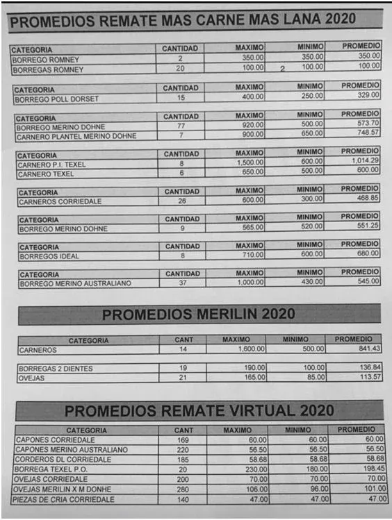 En primer lugar, se realizó un especial de carneros con más de 300 animales Texel, de Rancho Grande; Poll Dorset, de Las Rosas; Ile de France, de La Granada; Romney Marsh, de Rincón de los Negros; Corriedale, de La Porfía; Merino Dohne, de la Milagrosa; Merino Super Fino, de La Santigna; Merino Dohne y Merino Australiano, de Yta Kua; e Ideal, de Salpay.