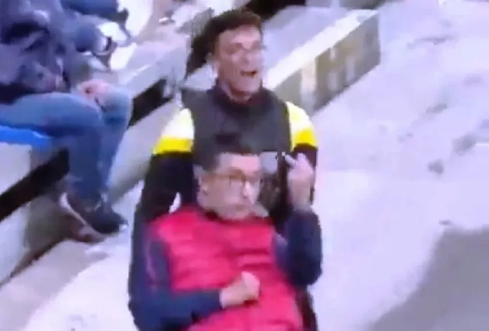 Fue entonces cuando apareció un hincha en silla de ruedas haciéndole el gesto del dedo mayor a los parciales de Inter. El video se viralizó en cuestión de horas.