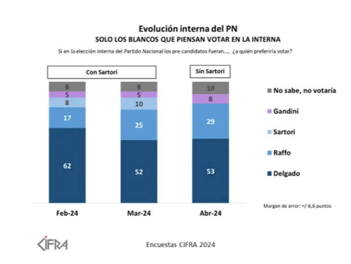 Con los porcentajes a la vista, Cifra asegura que en el Partido Nacional "hay un líder claro" que además "se presenta como la continuidad de un gobierno bien evaluado".