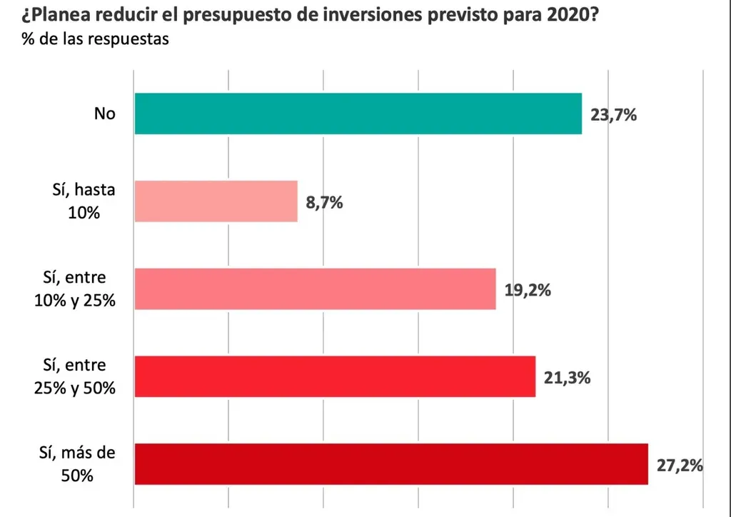 Dos de cada tres ejecutivos consultados entienden que la caída en el nivel de actividad de su negocio será mayor a 10%. Casi la mitad de ellos cree que la contracción será superior a 30%.