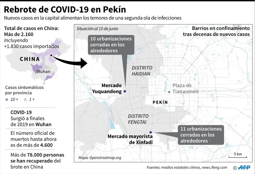 Ante la decena de nuevos brotes que parecen haber tenido su origen en el mercado mayorista Xinfadi y hacen crecer los temores de una nueva ola de la pandemia, varios barrios de la capital China están en situación de confinamiento.