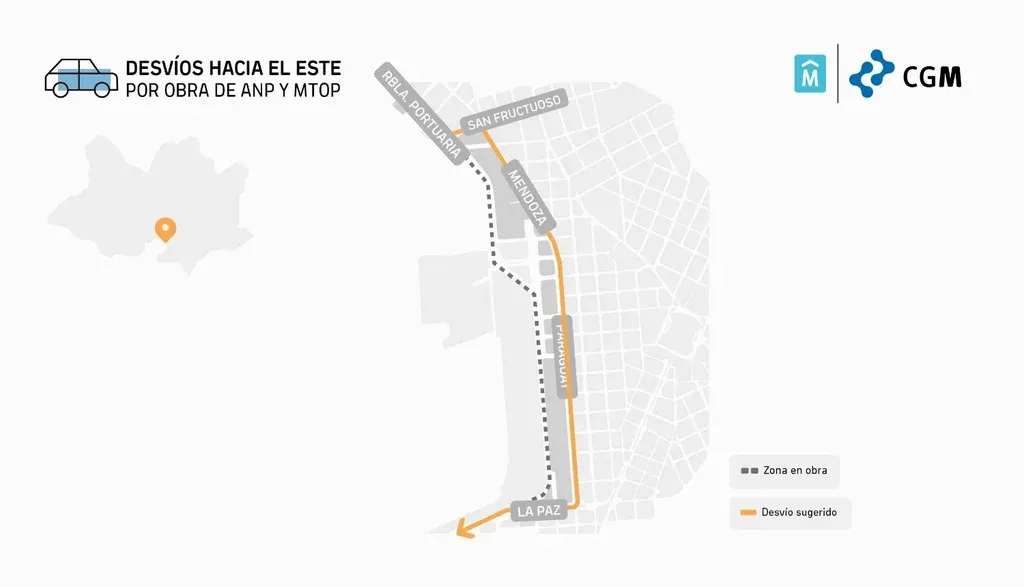 A partir de ese día, el corte de tránsito en la rambla será desde La Paz hasta San Fructuoso. Por esta razón, la IMM recomendó usar el desvío, hacia el este, de la rambla portuaria, San Fructuoso, Mendoza, Paraguay y La Paz. Hacia el oeste, en tanto, rige el desvío de Galicia, Rondeau, Fausto Aguilar, Jujuy y San Fructuoso.