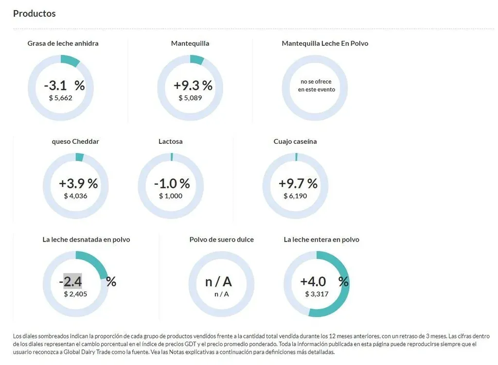 El índice global de precios de los productos lácteos subió por octava vez en forma consecutiva, ahora con un incremento de 1,9% en relación a la anterior, en el marco de los negocios de este martes 19 de la plataforma Global Dairy Trade (Fonterra).