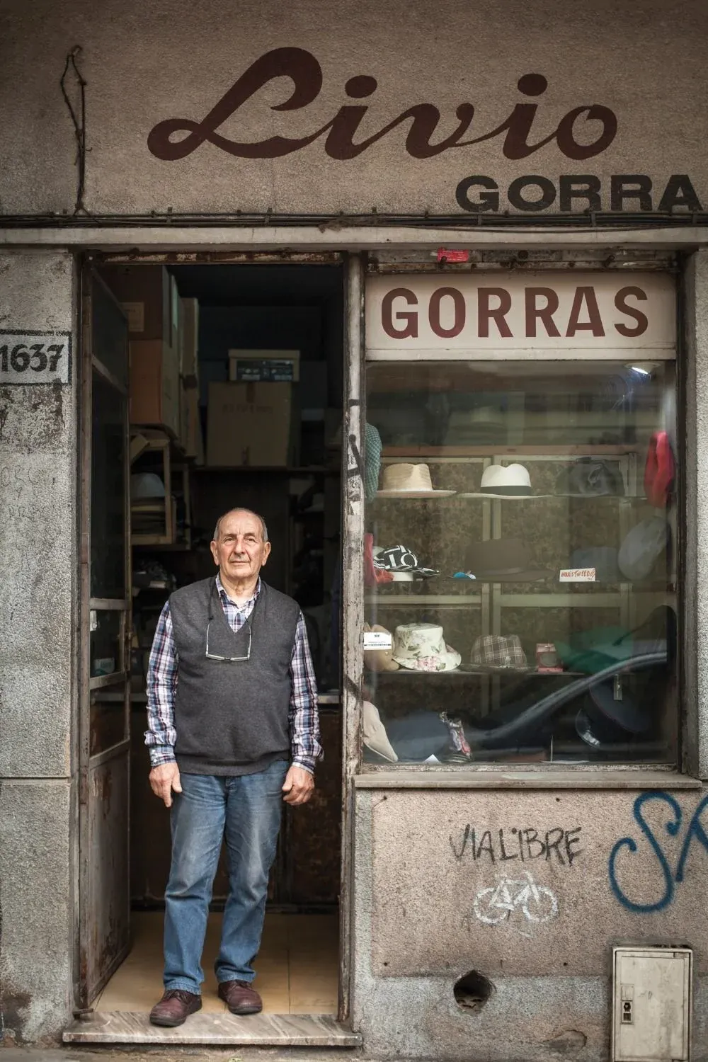 Aprendió el oficio casi sin darse cuenta, en familia. “Veníamos en tranvía desde casa en Brazo Oriental a la feria de Tristán Narvaja, cargando los sombreros para los tres puestos que teníamos”, recuerda atrás del mostrador con la mirada puesta en la vereda, mirando sin ver o viendo más allá. “Mamá tenía una mesa ahí, donde está estacionado ese auto, papá frente a la Facultad de Psicología, que entonces era un convento de monjas, y mi hermano mayor unas cuadras más abajo”, describe. En 1948 decidieron alquilar el pequeño local de la calle Tristán Narvaja casi Uruguay para usarlo en principio como depósito, pero rápidamente se convirtió en un punto de venta que funciona hasta la actualidad. El taller siempre estuvo en la casa de la familia, Livio tomó la posta cuando su madre y su padre se jubilaron, lo mantuvo y en 1980 compró el local.