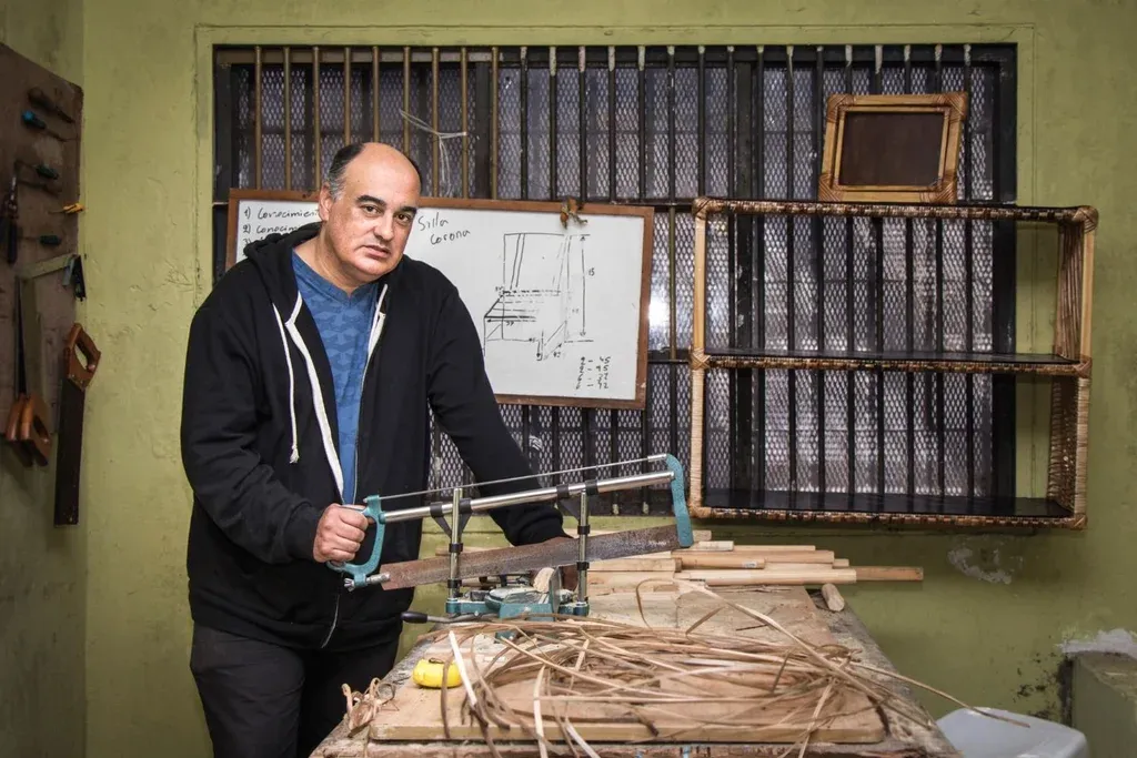 Hace casi 30 años aceptó la oferta de un colega para tomar su puesto como docente de mimbrería, primero en el Centro de Reclusión La Tablada y luego en el centro Desafío del Inisa, donde continúa hasta hoy. Forma a un promedio de 20 alumnos de entre 13 y 15 años por año. “La idea es darles una herramienta para cuando estén afuera, el mimbre es muy barato y pueden hacerse muchas cosas con poco, algunos se han puesto un taller en la casa cuando salieron”.