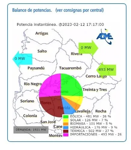 Por otro lado, esta semana Uruguay prevé continuar con la importación de energía desde Brasil a través de la conversora de Melo. Esas compras sirven para cubrir tramos puntuales de la demanda y así disminuir gastos por el encendido del parque térmico, con un ahorro estimado de US$ 800 mil diarios.