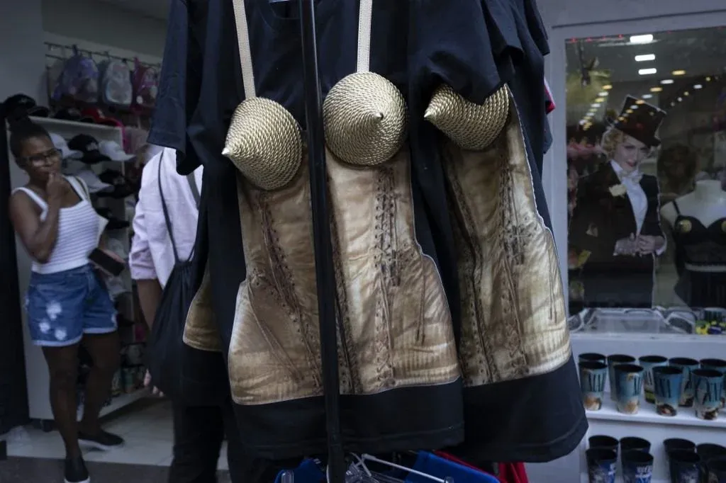 En la tienda, un complemento destrona a los demás: la imitación del icónico corsé cónico diseñado por el modisto francés Jean-Paul Gaultier y con el que la cantante dio la campanada en los escenarios en 1990.