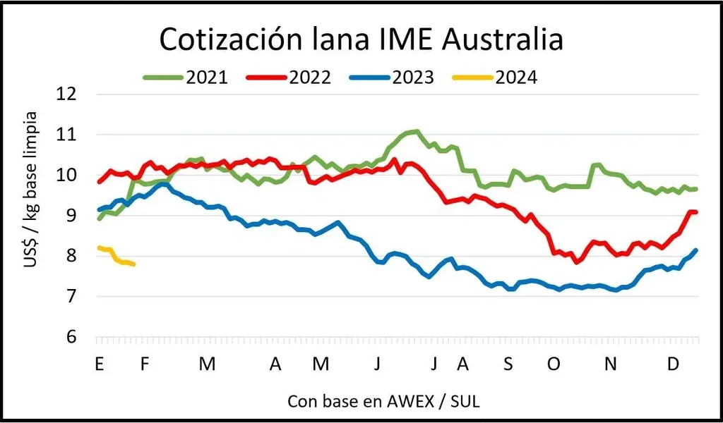 El Indicador de Mercados del Este (IME) retrocedió 0,5% a US$ 7,80 por kilo base limpia, algo menos que la caída de 0,8% en divisa local por el ligero fortalecimiento del dólar australiano.