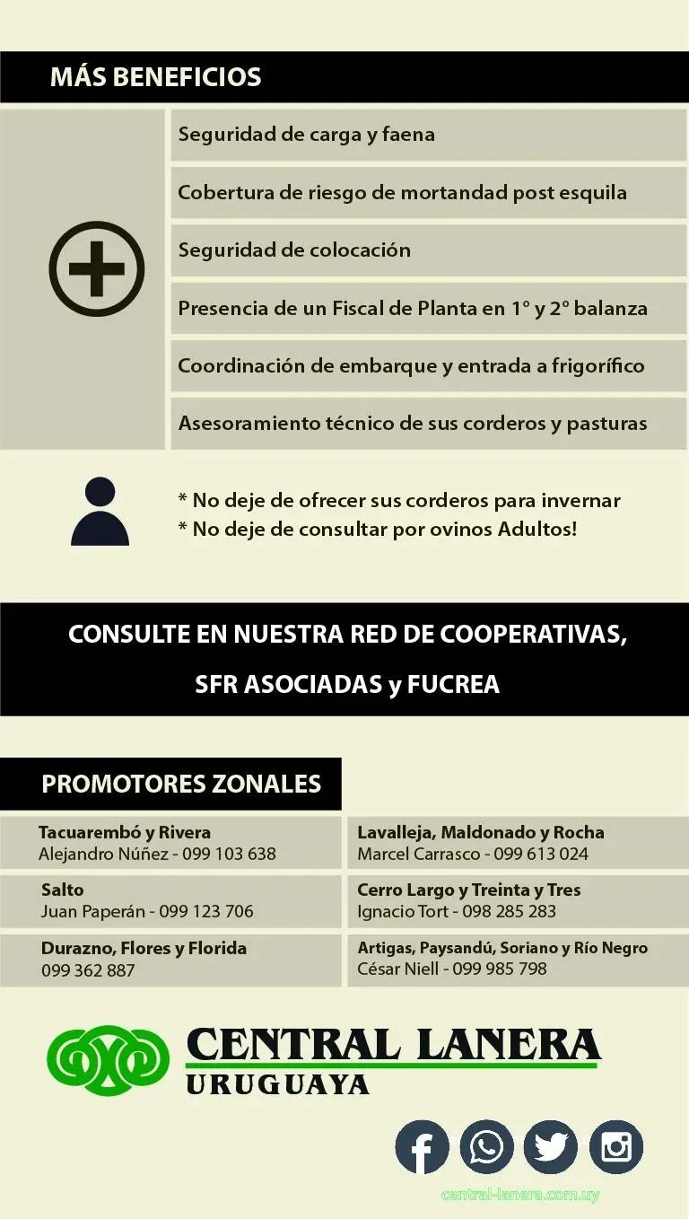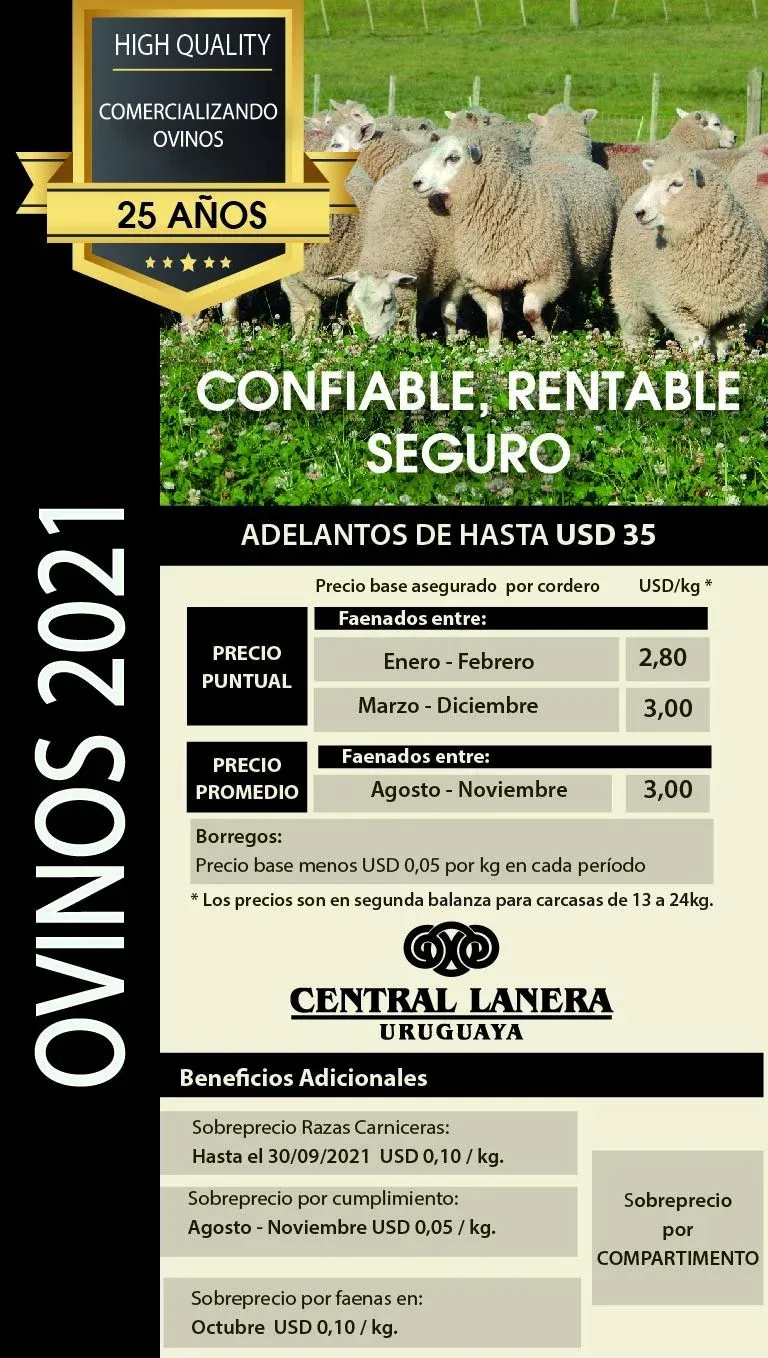 Central Lanera Uruguaya (CLU) anunció los detalles del Operativo Ovinos para 2021, en cuyo marco destaca que se ofrecen adelantos a los productores que participen equivalentes a US$ 20 a US$ 35 por animal inscripto.
