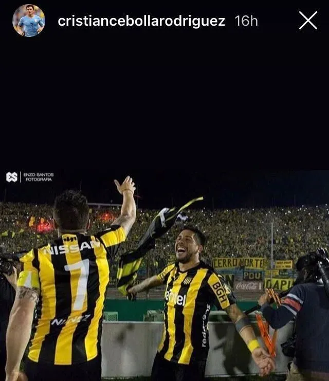 Esta vez fue un tanto más sutil. En una de sus historias compartió una foto suya con el Cachila festejando de cara a la Ámsterdam en los festejos del Uruguayo 2017 cuando el aurinegro se consagró campeón al ganarle por penales a Defensor Sporting.
