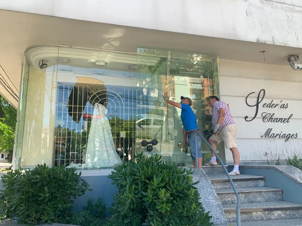 También aparece una camioneta incendiada sobre la rambla y la fachada del edificio Saint Tropez en la calle Marco Bruto con los vidrios rotos. La misma situación se repite en otros inmuebles del lugar.