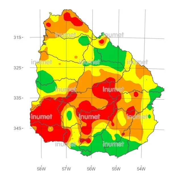 El Instituto Uruguayo de Meteorología (Inumet) monitorea el índice de riesgo de incendios en todo el país, en el siguiente mapa se puede ver la actualización al sábado 18 de febrero.