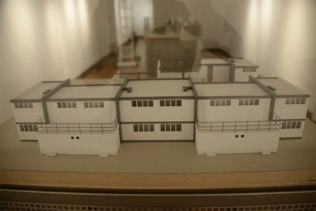 Por su parte, el sector Comunidad tiene que ver con la búsqueda de la Bauhaus de relación entre docentes y alumnos más allá del aula y la idea de perseguir una proyección de la escuela hacia afuera. Algunas de las obras de la muestra que colaboran en el entendimiento de este concepto son las maquetas del primer complejo habitacional para obreros que se diseñó desde la Bauhaus y de las casas para maestros –próximas a la segunda sede de la escuela en Dessau (1925)– que diseñó Gropius.