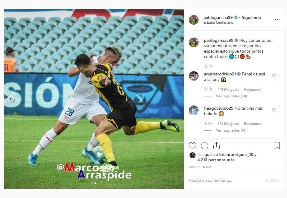 El posteo de Pablo García en Instagram y el Me Gusta de Brian Rodríguez