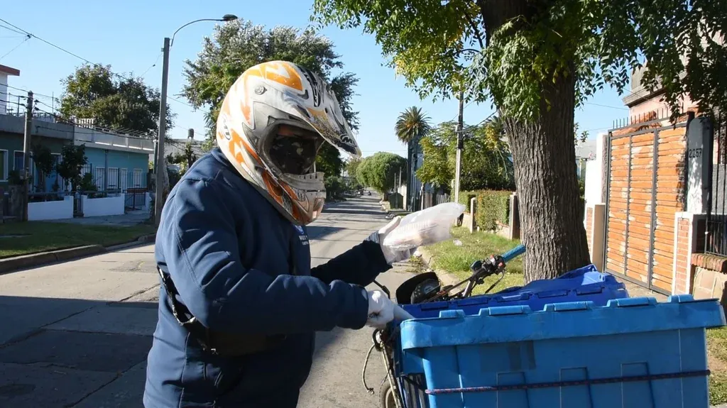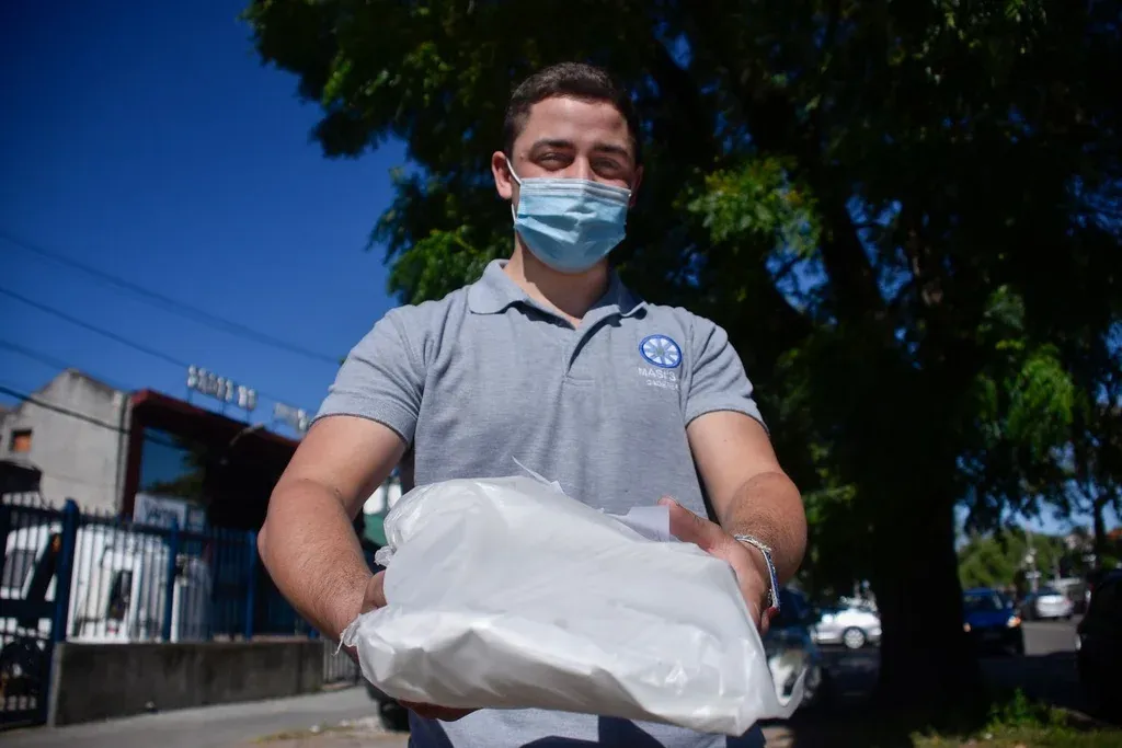 De Marco hace cinco años que trabaja como delivery. En la farmacia entrega los pedidos caminando, ya que la mayoría son cerca. Dice que fueron de los primeros en el barrio en usar tapabocas: “a lo primero te miraban raro, ahora es común”.