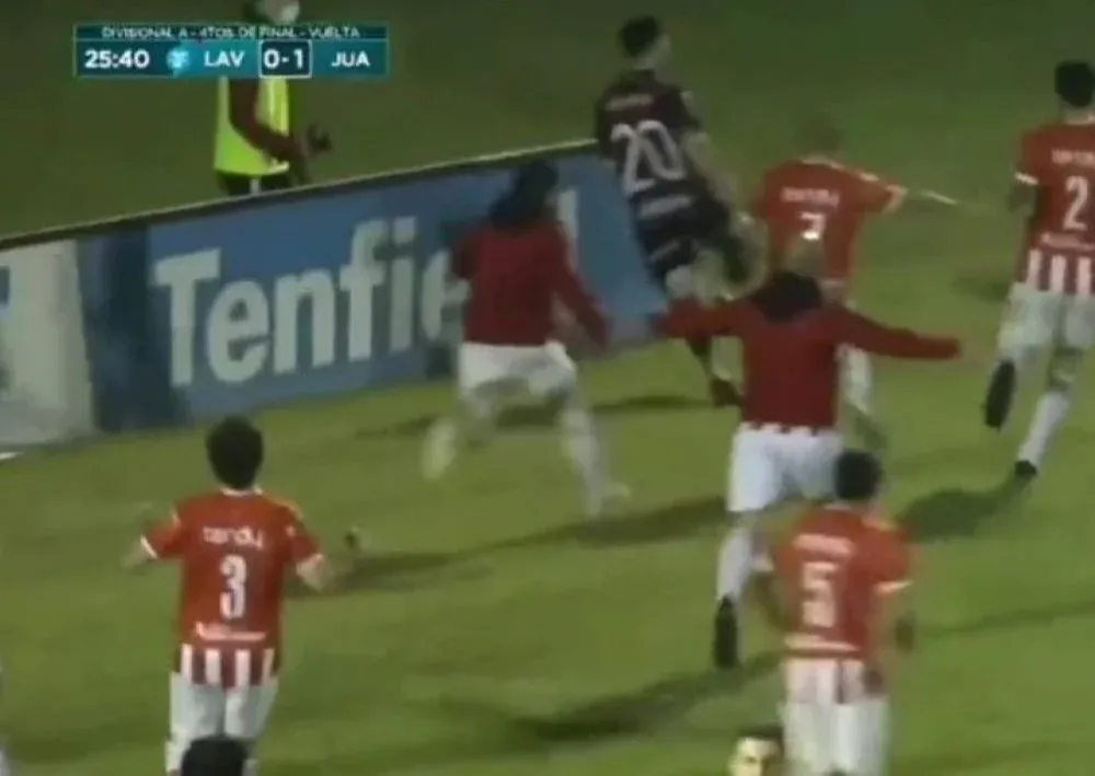 El jugador visitante Diego Meirana, que fue perseguido por varios rivales y terminó con un corte en su cabeza, también fue expulsado.