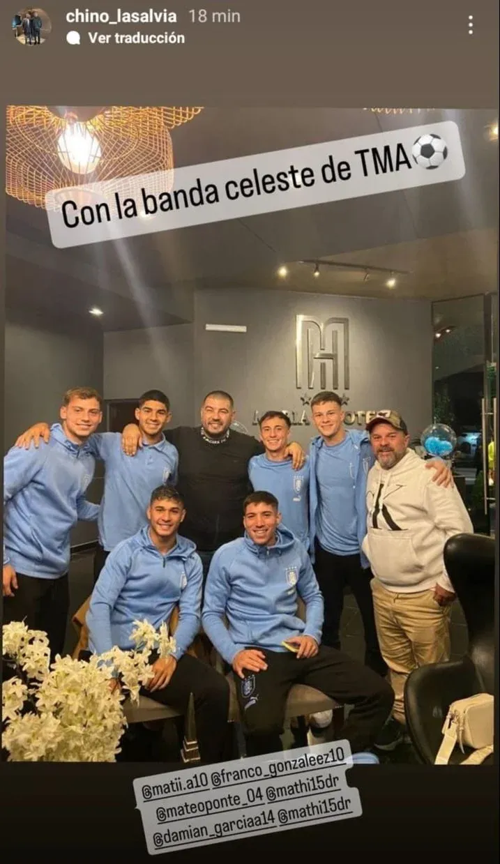 Instagram Lasalvia y sus jugadores El Chino también compartió una foto junto a Abaldo, quien le regaló su camiseta, y también junto a los jugadores de la sub 20 que representa: Franco González, Nicolás Siri, Mateo Ponte, Damián García, Mathías De Ritis y Abaldo.