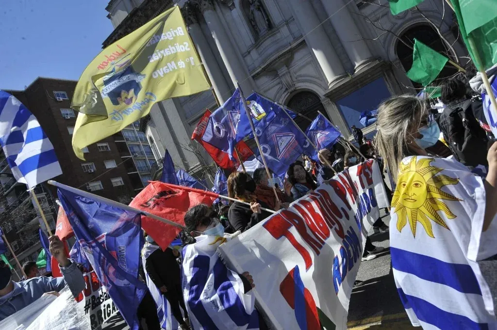 El paro general convocado por el PIT-CNT de este miércoles tuvo como plato fuerte la movilización frente al Palacio Legislativo y con el trasfondo de lograr derogar los 135 artículos de la ley de urgente consideración con el proceso de referéndum que está en marcha. La central sindical reclamó al gobierno por salario, trabajo para el desarrollo nacional pero también que no se transfieran los recursos de colonización al programa para eliminar asentamientos. "Soluciones en cuanto a más trabajo, en defensa de la educación pública, por una mejor salud pública, vivienda digna, en defensa de las empresas públicas y contra el hambre", planteó el PIT-CNT en un comunicado.
