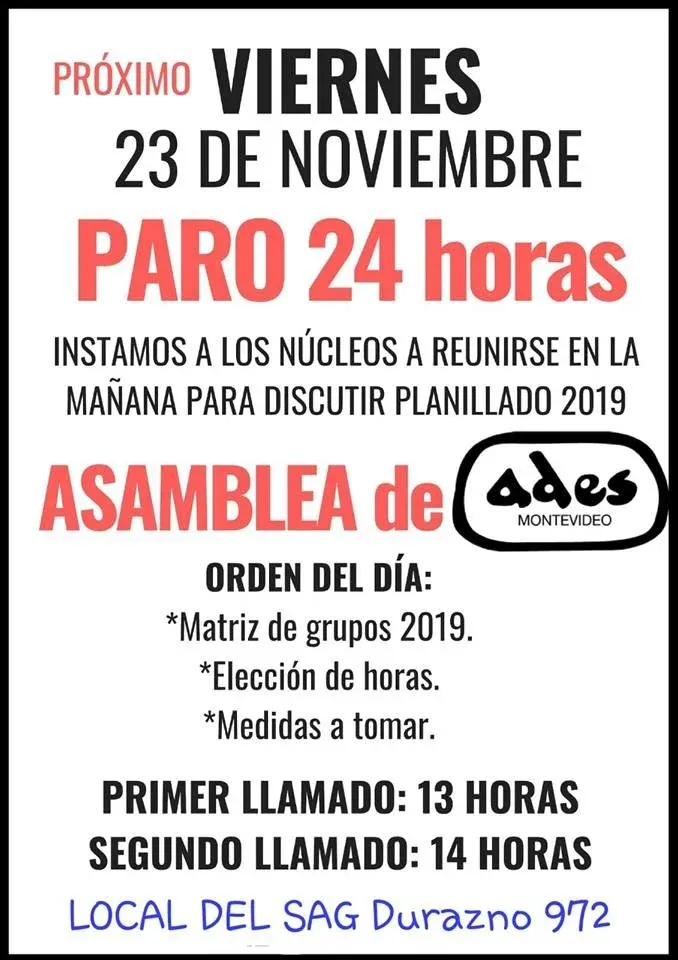 La Asociación de Docentes de Enseñanza Secundaria (ADES) resolvió suspender sus actividades en todos los liceos públicos de Montevideo durante la jornada de este viernes 23 de noviembre.