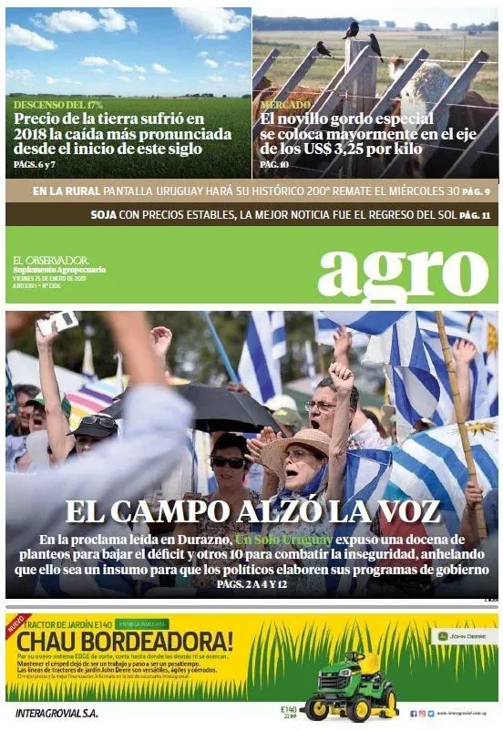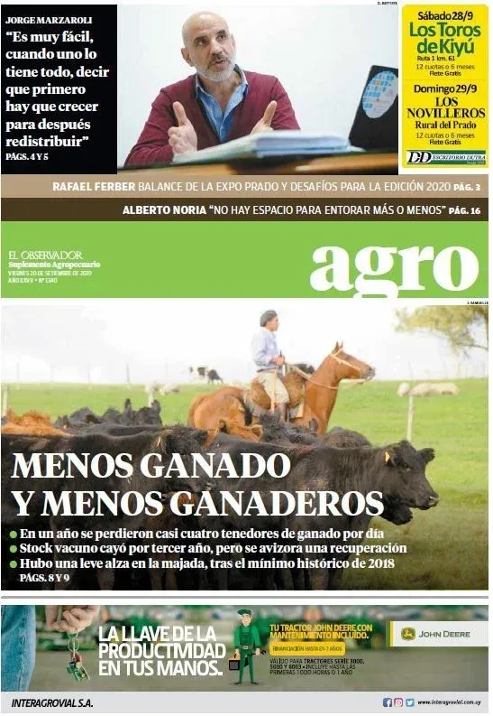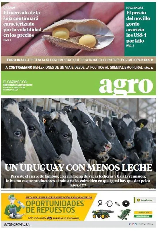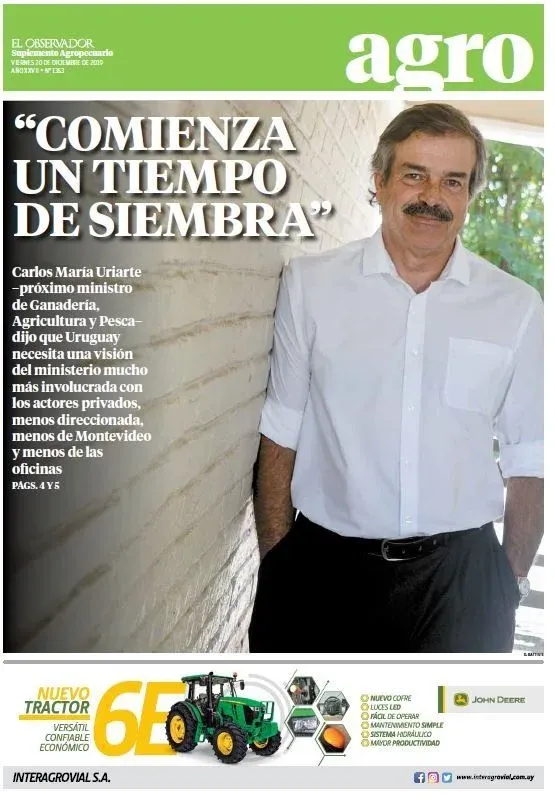 "Uriarte dijo que Uruguay necesita un ministerio mucho más involucrado con los actores privados, menos direccionado, menos de Montevideo y menos de las oficinas", 20 de diciembre - Agropecuario N° 1353