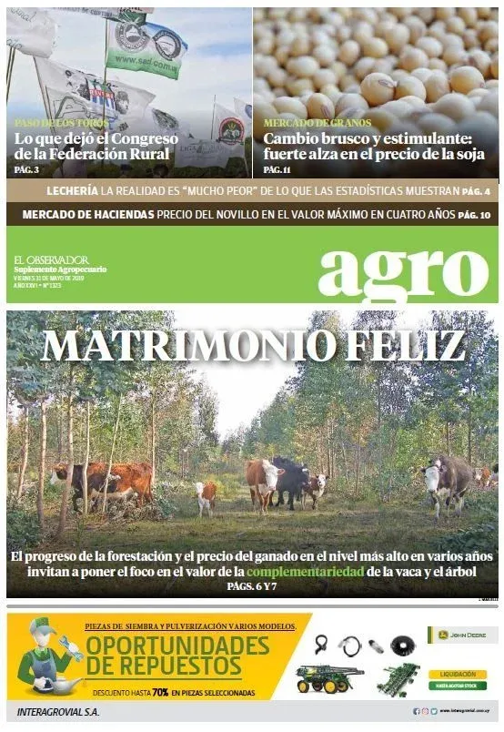 "El progreso de la forestación y el precio del ganado en el nivel más alto en varios años invitan a poner el foco en la complementariedad de la vaca y el árbol", 31 de mayo - Agropecuario N° 1323