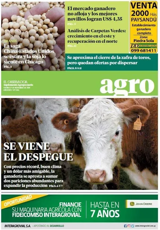 Otro título de tapa: El mercado ganadero no afloja y los mejores novillos logran US$ 4,35