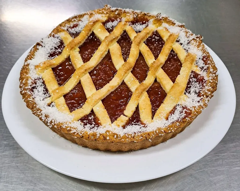 Decorada con finas tiras de la misma masa, formando un cuadriculado romboidal sobre la capa dulce, se convirtió en un clásico preferido por muchos.