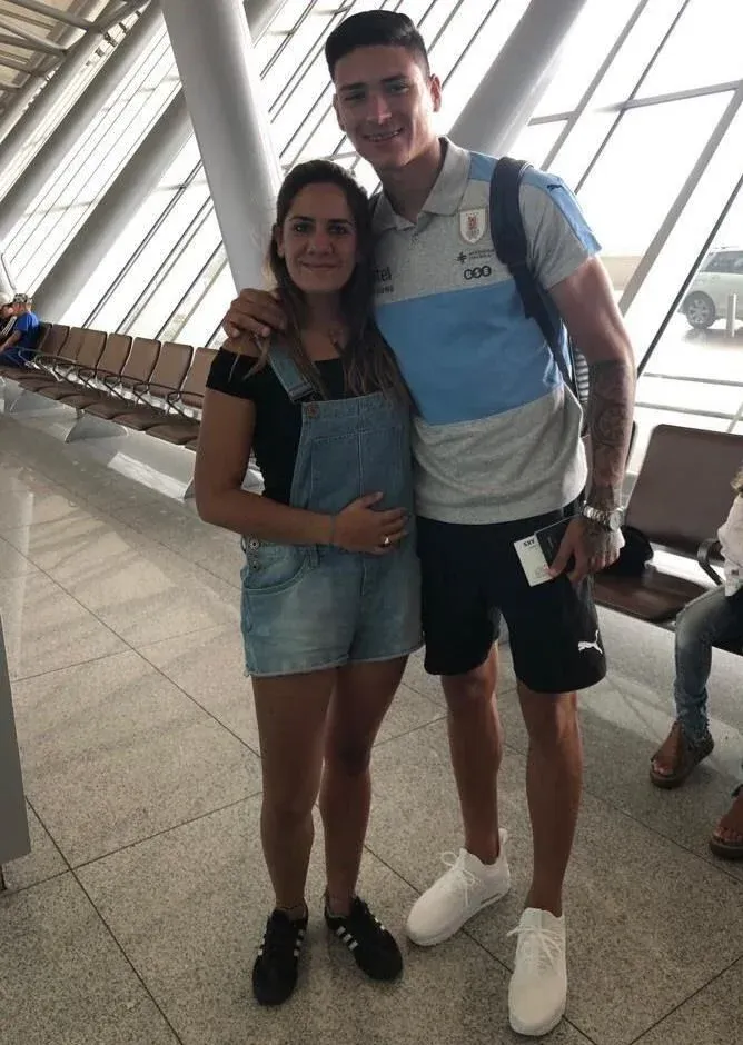 Patricia López y Darwin Núñez cuando el delantero viajó por primera vez con la selección uruguaya