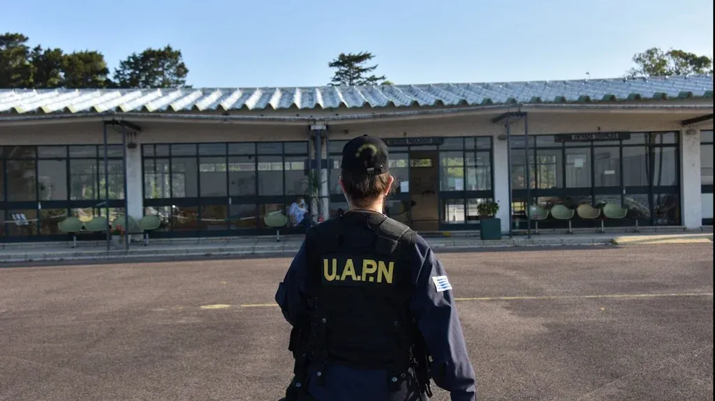 Antes de subir la policía le explica a El Observador las indicaciones de seguridad: atravesar la pista caminando, sostener fuerte todos los objetos que se puedan volar fácilmente y unos metros antes de llegar al helicóptero agacharse y acelerar el paso, porque el piloto espera con las hélices a media marcha.