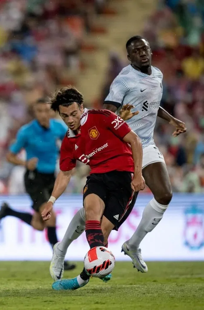 El volante uruguayo de Manchester United, Facundo Pellistri, mostró su emoción y alegría tras marcar un gol en la goleada 4-0 a Liverpool, en el partido amistoso de pretemporada disputado este martes en la capital de Tailandia, Bangkok, el primero del nuevo entrenador de los 'Red Devils' Erik Ten Hag.