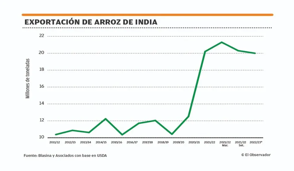 EO Pero en los mercados el panorama no está fácil. Las restricciones que ha impuesto India hasta ahora no han tenido un efecto porque está muy regionalizado el comercio arrocero. Va a tener repercusión en África, porque son arroces de baja calidad.
