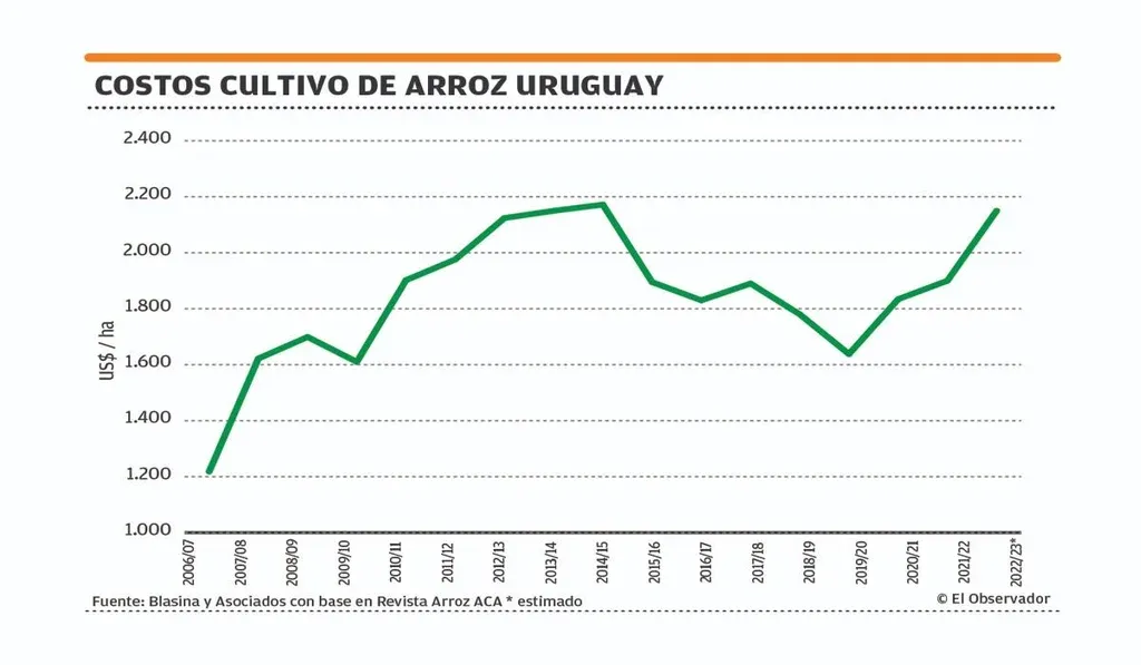 EO Ese aumento de costos pone la vara muy alta en los rendimientos, se necesitan 9.100 kilos/ha para empatar. El cultivo viene de dos zafras consecutivas de muy alto rendimiento, tras un récord de 9.400 kilos en 2021, se levantaron 9.318 kilos en este otoño.