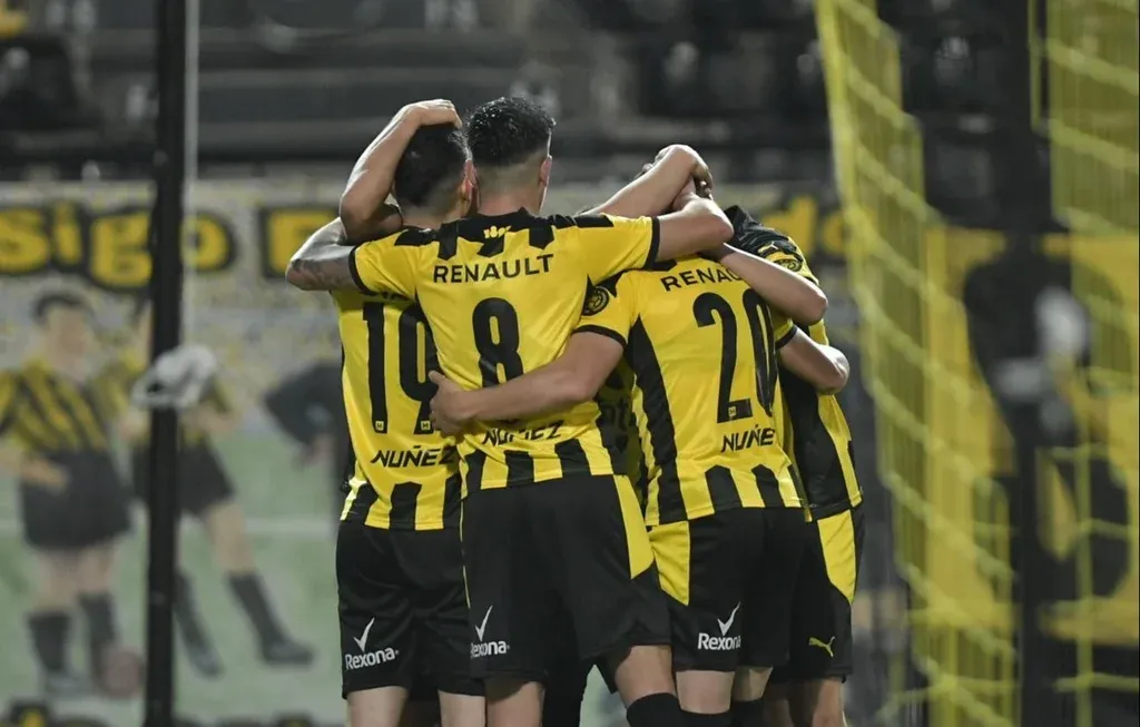 Peñarol celebra el gol del Canario Álvarez ante River Plate
