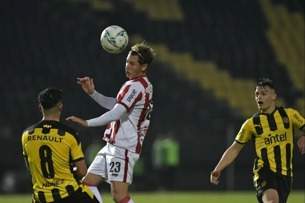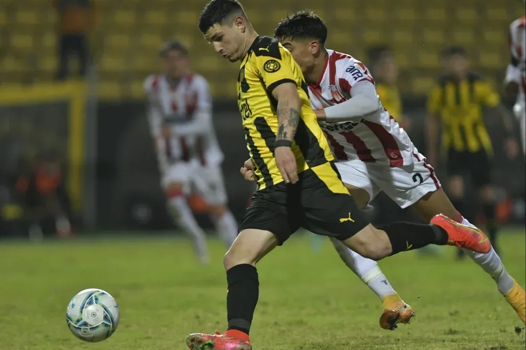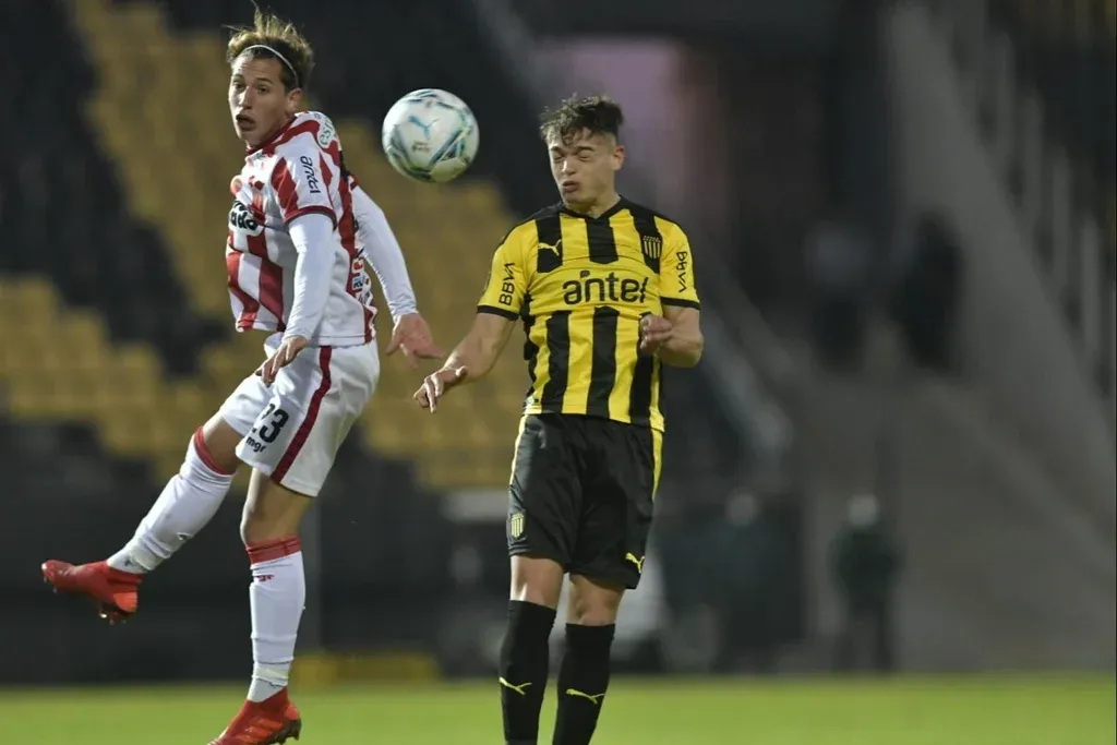 Luciano Boggio de River Plate ante Valentín Rodríguez de Peñarol