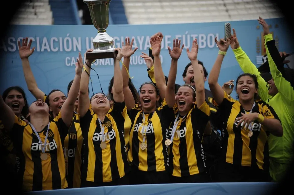 Las futbolistas, desde la cancha, se sumaban a los cantos de los hinchas de Peñarol, que estaban en la tribuna Héctor Scarone, del estadio tricolor. Minutos más tarde levantaron la copa de campeones del torneo Apertura, que les permitirá pelear por el tricampeonato, también en fútbol femenino, al final de la temporada.