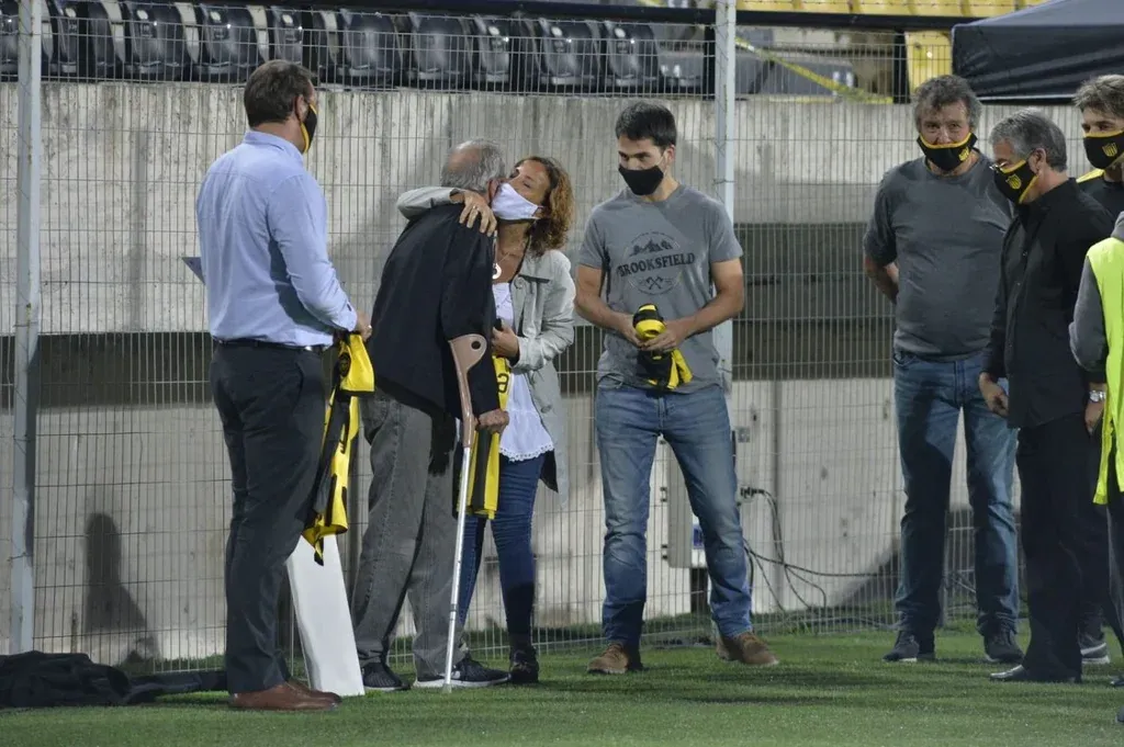 El presidente de Peñarol, Ignacio Ruglio, llevó a cabo un homenaje al Maestro Óscar Tabárez este jueves previo al partido ante Deportivo Maldonado en el Estadio Campeón del Siglo.