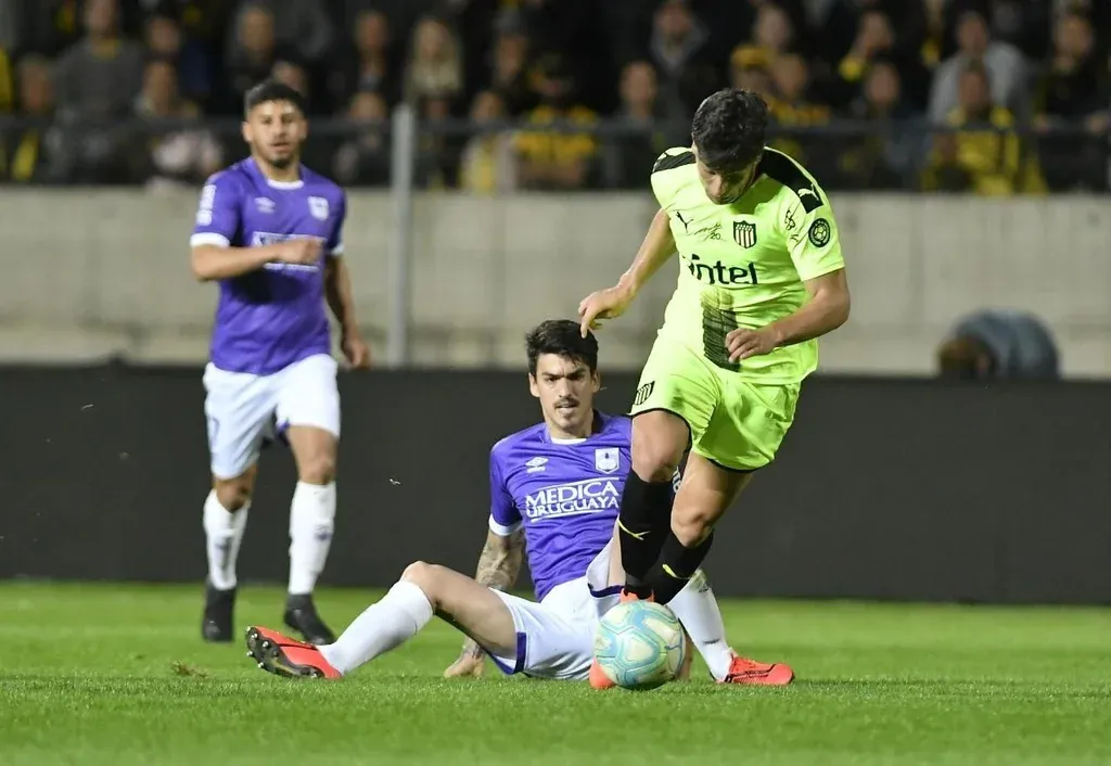 Facundo Pellistri fue titular en Peñarol por primera vez -había tenido minutos en el clásico- y se destacó por su velocidad en el costado derecho. El juvenil tuvo una de las más claras de la primera parte con un tiro rastrero que Fuentes mandó al córner.