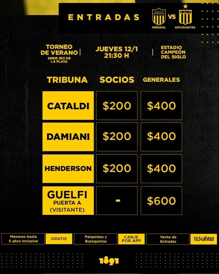 Peñarol dio a conocer este jueves los detalles de la venta de entradas para su primer partido de la temporada 2023 que será un amistoso ante Estudiantes de La Plata de Argentina por la Serie Río de La Plata.