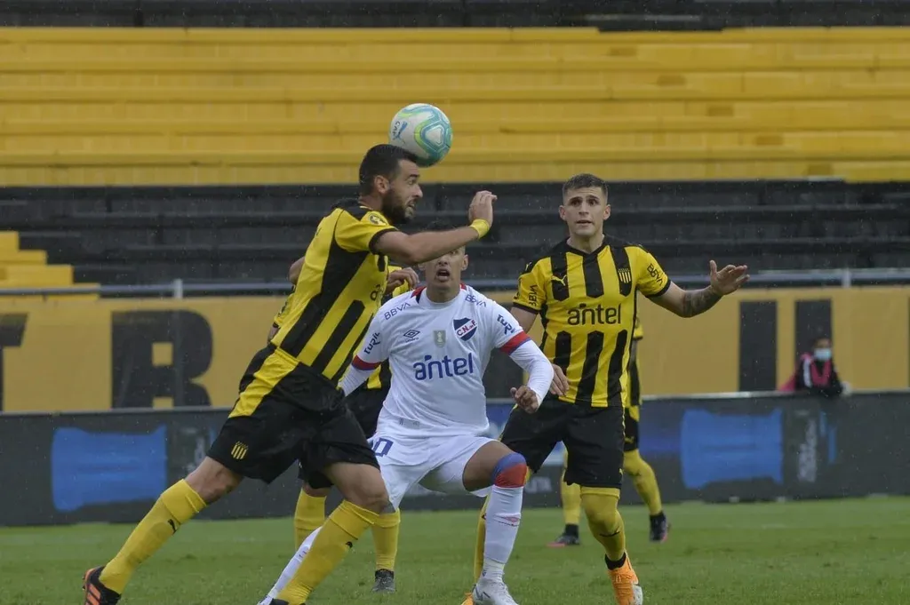 Sin embargo, fue Nacional el primero en aproximarse con cierto peligro sobre el arco rival. A los 9' una salida en largo de Formiliano generó que la pelota volviera rápidamente a espaldas del doble 5 de Peñarol. Carballo lo aprovechó para rematar cruzado cerca del palo derecho de Dawson.