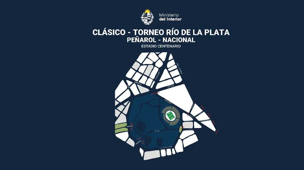 Según indicó la cartera en un comunicado, las acciones de las autoridades por el partido comenzaron este lunes por la noche con un "patrullaje de prevención" en el Estadio Centenario y en la concentración de ambos clubes.