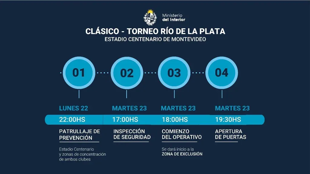 El Ministerio del Interior comunicó cómo será el operativo policial para el clásico de verano que disputarán Peñarol y Nacional este martes a las 21:30 en el Estadio Centenario.