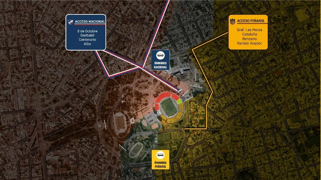 A las 19:30 se abrirán las puertas del Centenario. Los hinchas de Peñarol podrán ingresar llegando a través de las calles Las Heras, Cataluña, Benzano y Ramón Anador. Los parciales de Nacional, en tanto, lo harán desde las avenidas 8 de Octubre, Garibaldi, Centenario y la calle Albo.