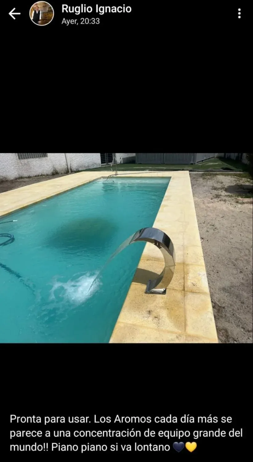 Ignacio Ruglio escribió un mensaje y mostró la piscina de Peñarol en Los Aromos