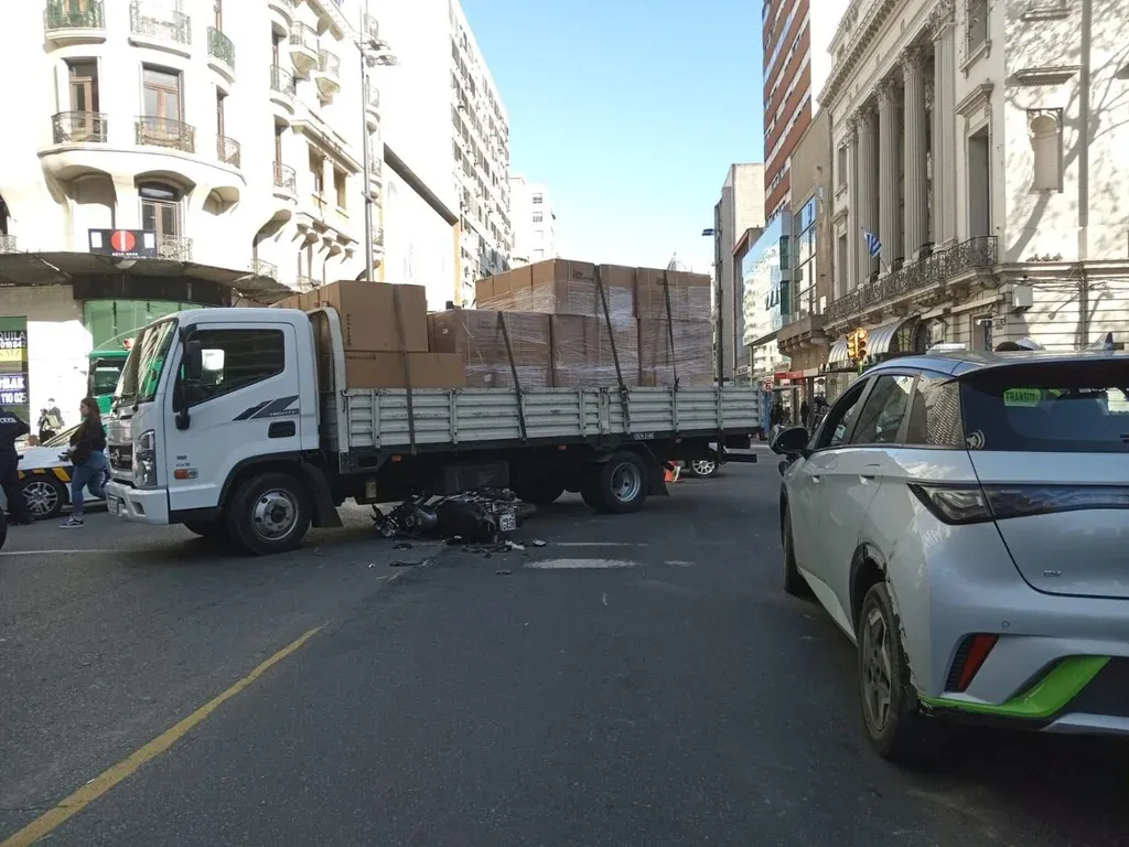 El impacto se produjo en el momento en que la moto circulaba por 18 de Julio hacia la Plaza Independencia mientras que el camión lo hacía por Yaguarón y estaba doblando hacia la principal avenida. Primero el delincuente impactó contra un auto, que era un Uber, y luego contra el camión.