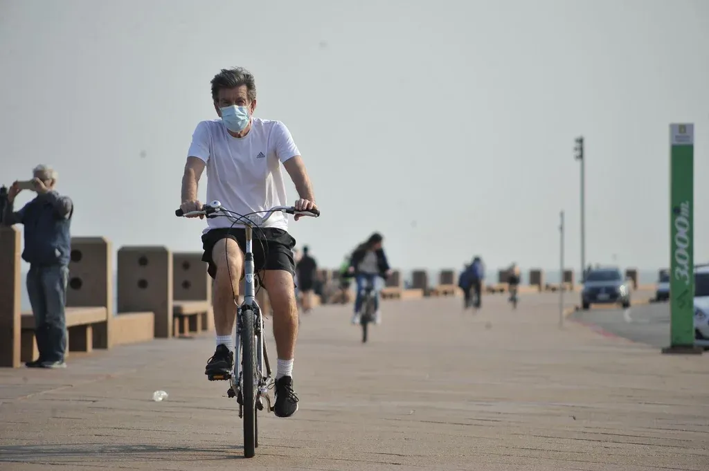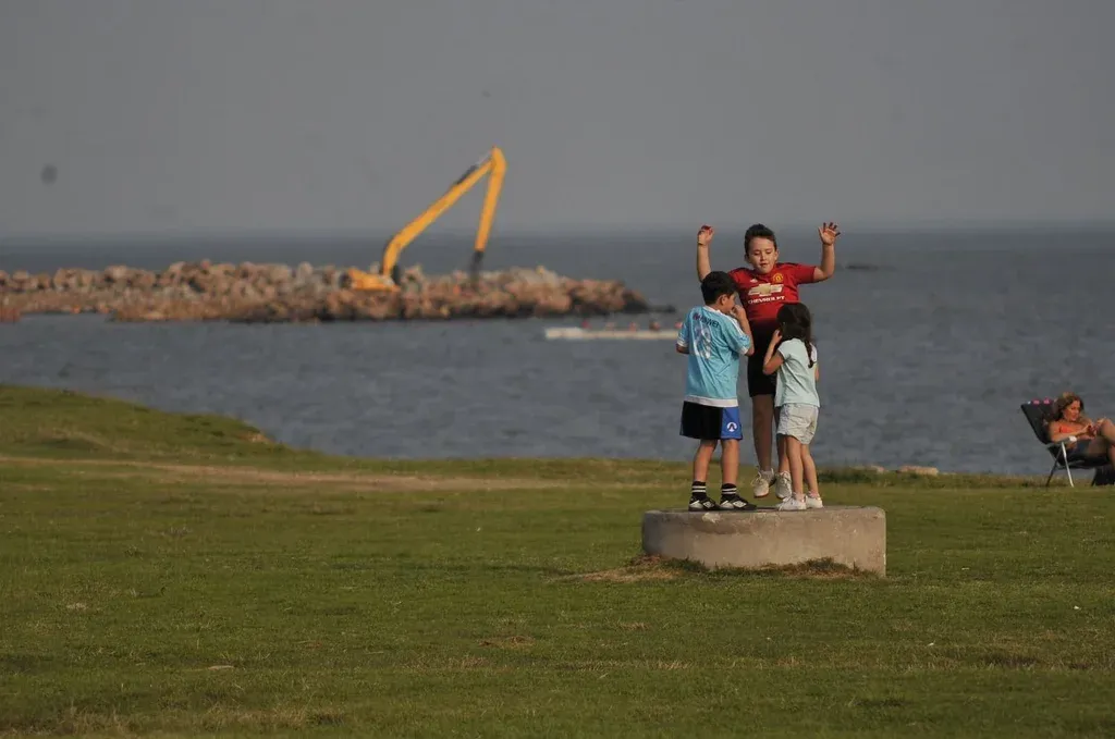 En la rambla de Punta Carretas el movimiento es el de un día de verano. Hay varios jóvenes tirados en el pasto, algunos miran el horizonte sentados en una silla playera y otros andan en bicicleta. También están los que juegan a la pelota y los que hacen ejercicio sin remera, olvidándose que falta un mes y medio para que la estación más fría. Otros más arriesgados bajaron a la arena.
