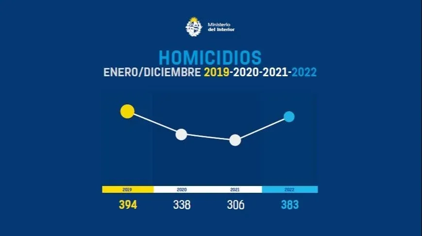 Este 2022 hubo 11 homicidios menos que en 2019. El ministro indicó que el país está "en los mismos guarismos". Los técnicos valoran especialmente la cifra de homicidios porque es el delito que menos depende de la denuncia. Es decir, una rapiña o un hurto, una víctima puede decidir no denunciarla. Mientras que el homicidio, inevitablemente es reportado porque aparece el cuerpo.