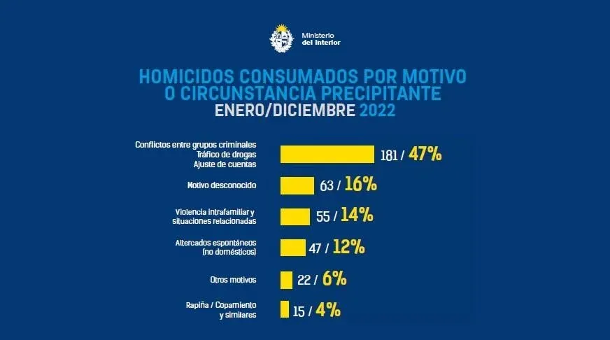 Desde el mes de mayo de 2022 el Ministerio del Interior pudo prever que se avizoraba el peor año de su gestión en materia de homicidios. El primer trimestre ya mostraba un aumento de 33% respecto del mismo período de 2021 y una seguidilla de 16 muertos en 10 días en mayo, lo agravó. Para tratar de cambiar esa tendencia, el ministro, Luis Alberto Heber, le presentó un plan al presidente, Luis Lacalle Pou, para contener los homicidios. Finalmente, el año cerró con 383 casos, 25% más que 2021.