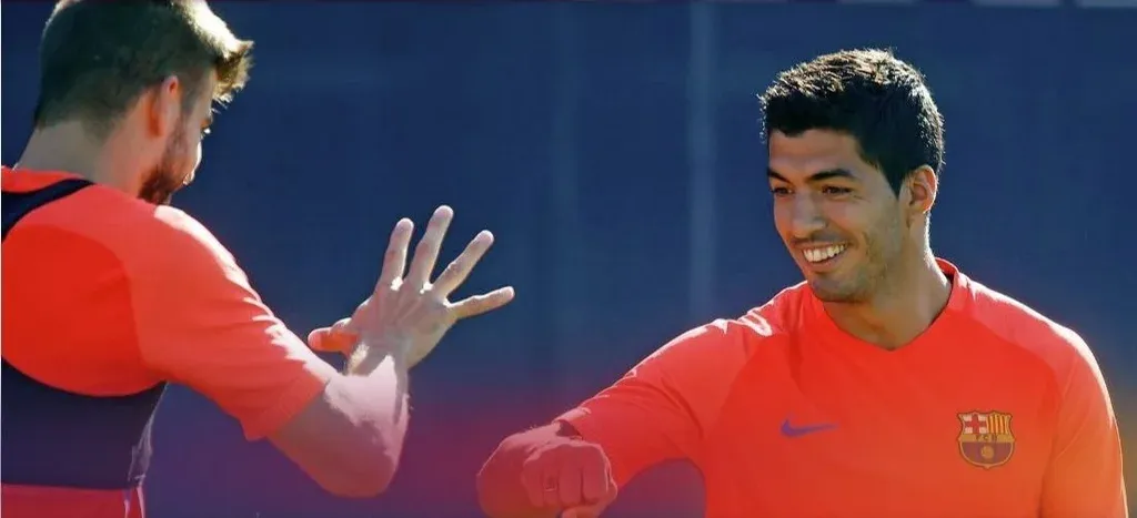 En la siguiente fotografía de 2016 se ven a Gerard Piqué y Luis Suárez en pleno juego.